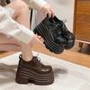 Britse stijl platform retro muffin enkele schoenen herfst nieuwe modieuze veelzijdige ronde neus hoogte verhoging kleine leren schoenen