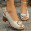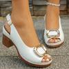 Elegante Dames Peep Toe Pumps Lente Zomer 2025 Lakleer Achterband Hoge Hakken Schoenen Vrouw Plus Size Metalen Gesp Sandalen