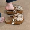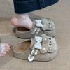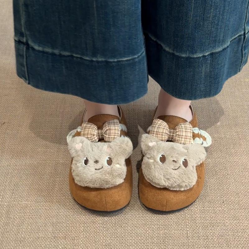 Suède Meisjes Hart Strik Beer Baotou Schoenen Dames 2025 Herfst Schattig Cartoon Mori Retro Veelzijdige Pantoffels