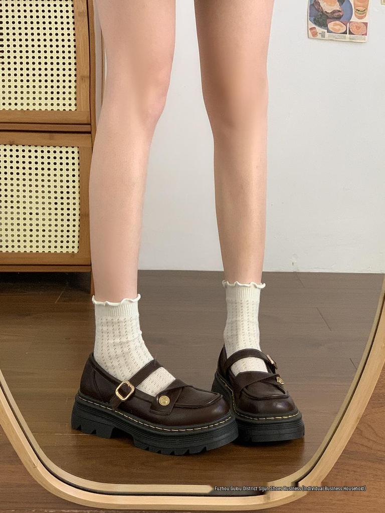 Dames Lente 2025 Zwarte Mary Jane Leren Schoenen - Ronde Neus, Dikke Zool, JK Stijl