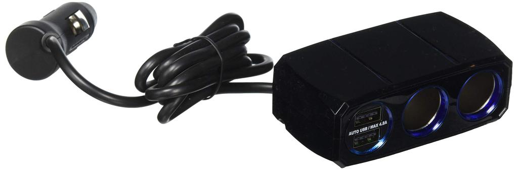 Kashimura NKX-203 Dual Separate Socket, 2 Reversible USB Ports, Automatically Detects 4.8A Power Socket Splitter, 2 DC Ports, 2 USB Ports