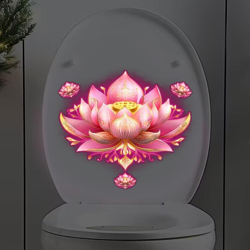 Glow-In-The-Dark Lotus Dahlia Fiets Bloem Toilet Stickers Zelfklevend Verwijderbaar Uv Nacht Decal Muurstickers Badkamer Decor