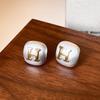 Gouden H Letter Emaille Oorknopjes, 18k Dik Verguld, Witte Melktheekleur, Dames Mode Sieraden.