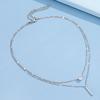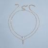 Teardrop Rhinestone Double-Layered Clavicle Necklace with Long Bar Pendant