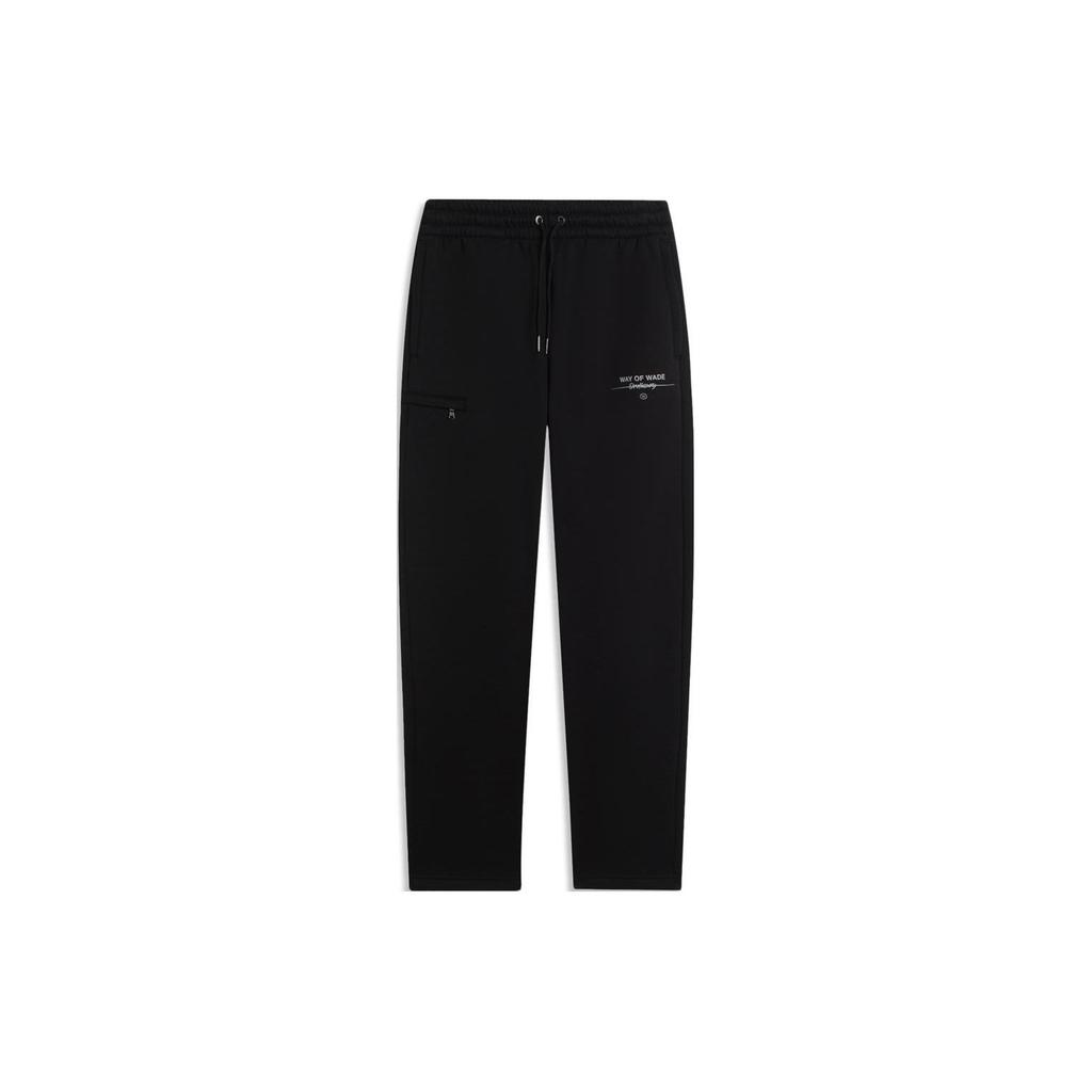Li Ning Wade Serie Letterprint Trekkoord Warm Rechte Pijp Gebreide Sportbroek Heren onderkleding Zwart AKLTB95
