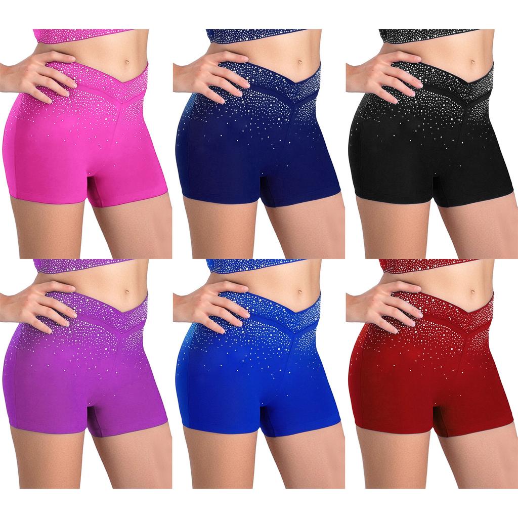 Kids Performance Shorts with Sparkling Rhinestones V-Front Elastic Waistband for Dance Gymnastics