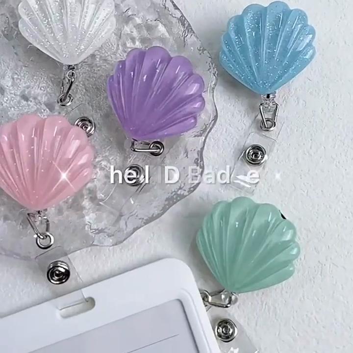 Glitter Schelp Badge Reel Intrekbare ID-Kaart Badgehouder Naamplaatje Werk Alligator Clip voor Leraren Kantoorpersoneel Verpleegkundigen