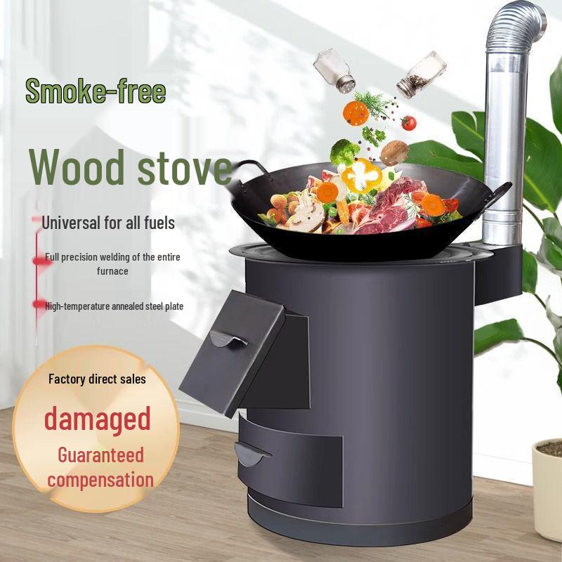 Draagbare Rookloze Houtkachel: Binnen-/Buitenverwarming met Grote IJzeren Pot, Energiezuinig, Extra Dik Ontwerp.
