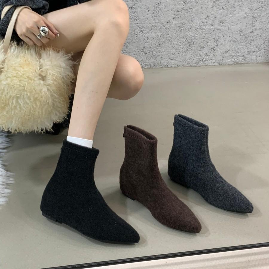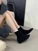 Flat-bottomed French square head short boots women's boots winter 2025 new velvet thin boots