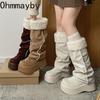 Winter Chunky Platform Hakken Dames Sneeuwlaarzen Beknopt Hoogteverhoging Kort Pluche Schoenen Warme Katoenen Lange Booties Mujer