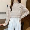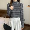 Real shot h turtleneck bottoming shirt women's autumn and winter velvet inner versatile loose striped long sleeves