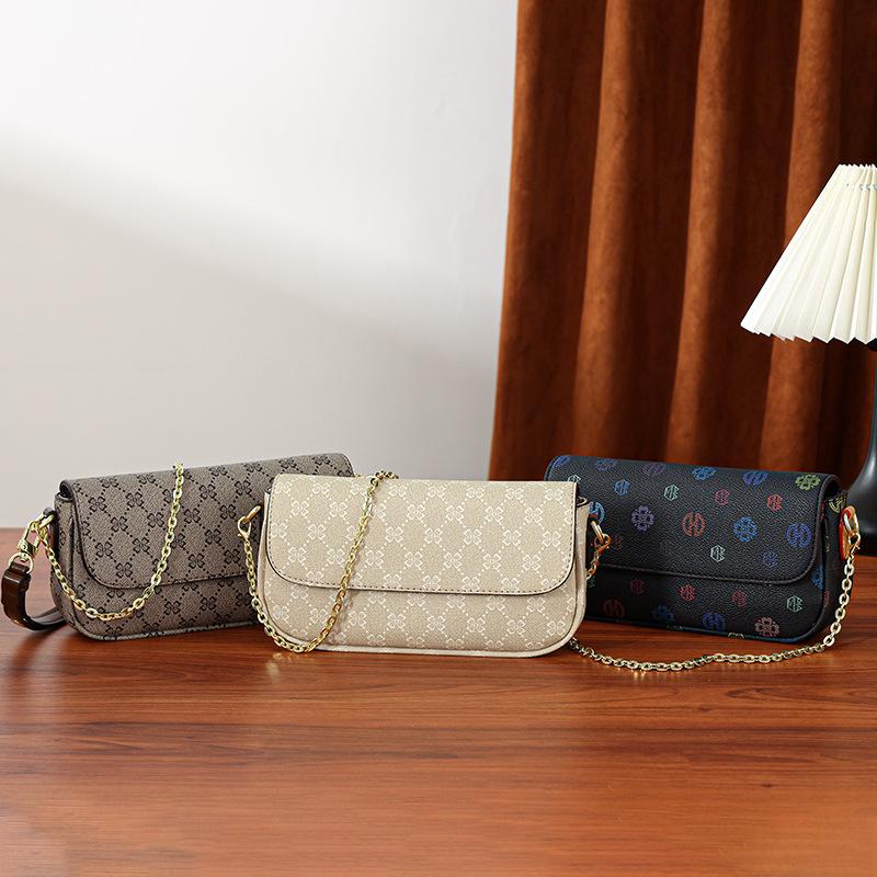Women's 2025 Versatile Color Block Chain Bag: Small Retro Print Crossbody & Shoulder Bag