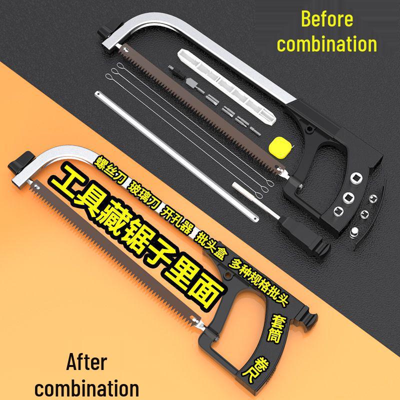 Universal Hacksaw Frame with Mini Fret and Jigsaw Blades for Woodworking and Household Use