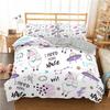 Dit is een driedelige bedrukte quiltset, inclusief een dekbedovertrek en twee kussenslopen. Dankzij de voortreffelijke afdruktechnologie zijn de kleuren helder en de details duidelijk. Het materiaal van de bedovertrek is huidvriendelijk en comfortabel en kan een unieke stijl aan de slaapkamer toevoegen. Of het nu gaat om het creëren van een warme sfeer of het uiten van uw persoonlijke smaak, het kan de klus met gemak klaren en een unieke visuele en bruikbare ervaring aan uw slaapkamer toevoegen.