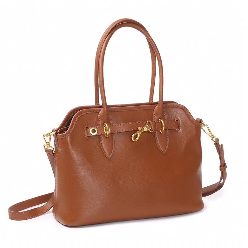 2025 Autumn Winter New Genuine Leather Handbag Women Tote Bag Vintage Versatile Vegetable Tanned Top Layer Cowhide Commuter Women's Bag Crossbody