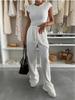 Dames 2-delige set in effen kleur, casual sportkleding, lange broek