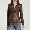Women's Handmade Genuine Stylish Lambskin Blazer Office Formal Wear Leather Brown