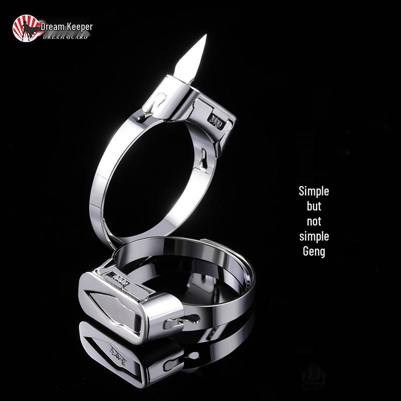 Adjustable Silver Titanium Steel Geometric Hidden Blade Self-Defense Ring