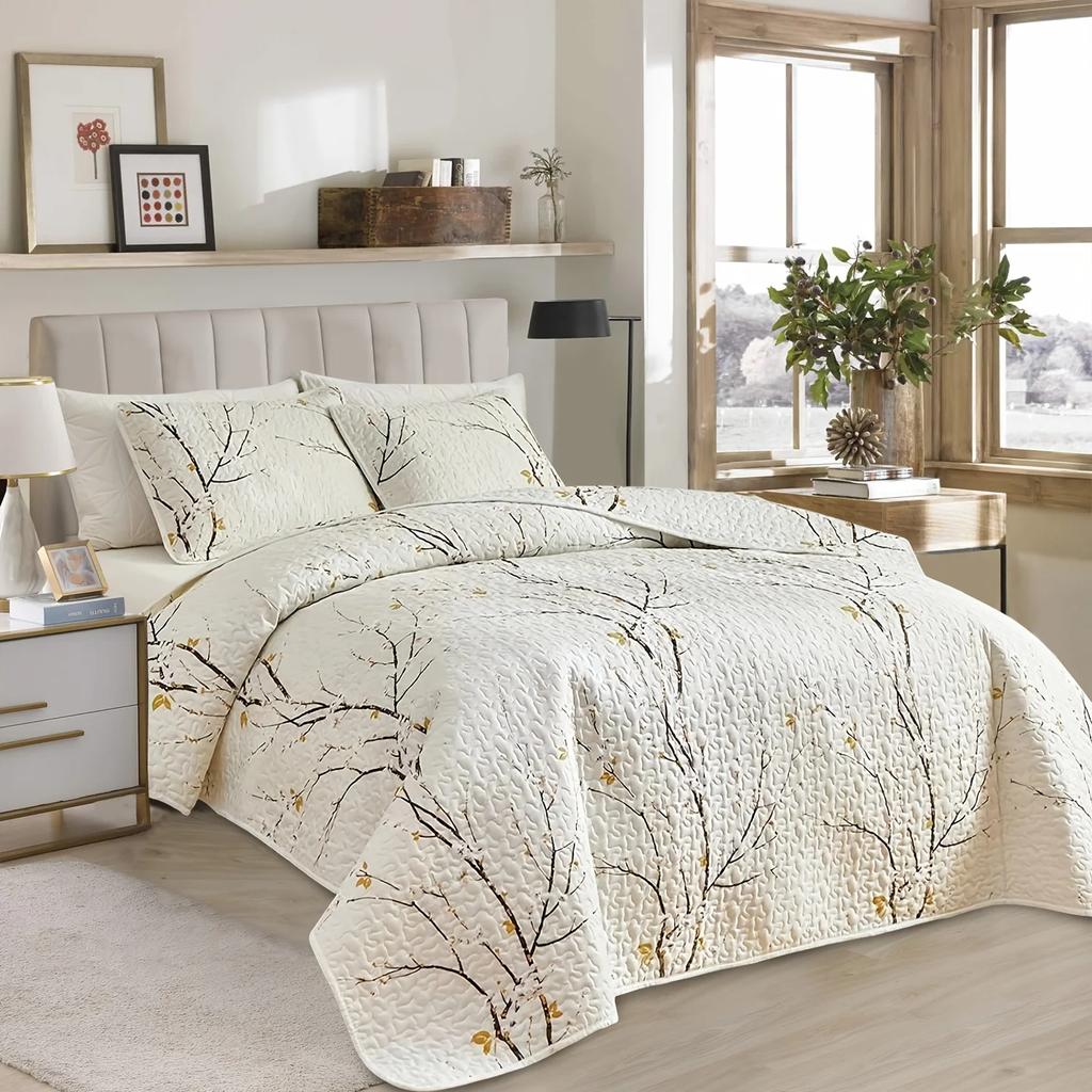 Classic Floral Print Non-Slip, Universal Warmth Bedding Ramadan 3 Piece, Quilted Patchwork Bed Skirt Set
