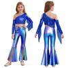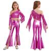 De combinatie van een crop top en een flared broek zorgt voor een stijlvolle en complete outfit, perfect voor jonge meisjes om hun persoonlijkheid te laten zien.