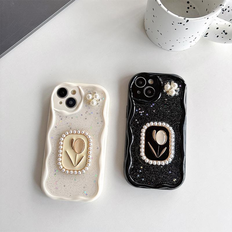 Parel Tulp Bloem Telefoonhoesje voor IPhone17 Pro Sprankelende Roze Ster voor Apple 16 Silicone Volledige Bescherming 14