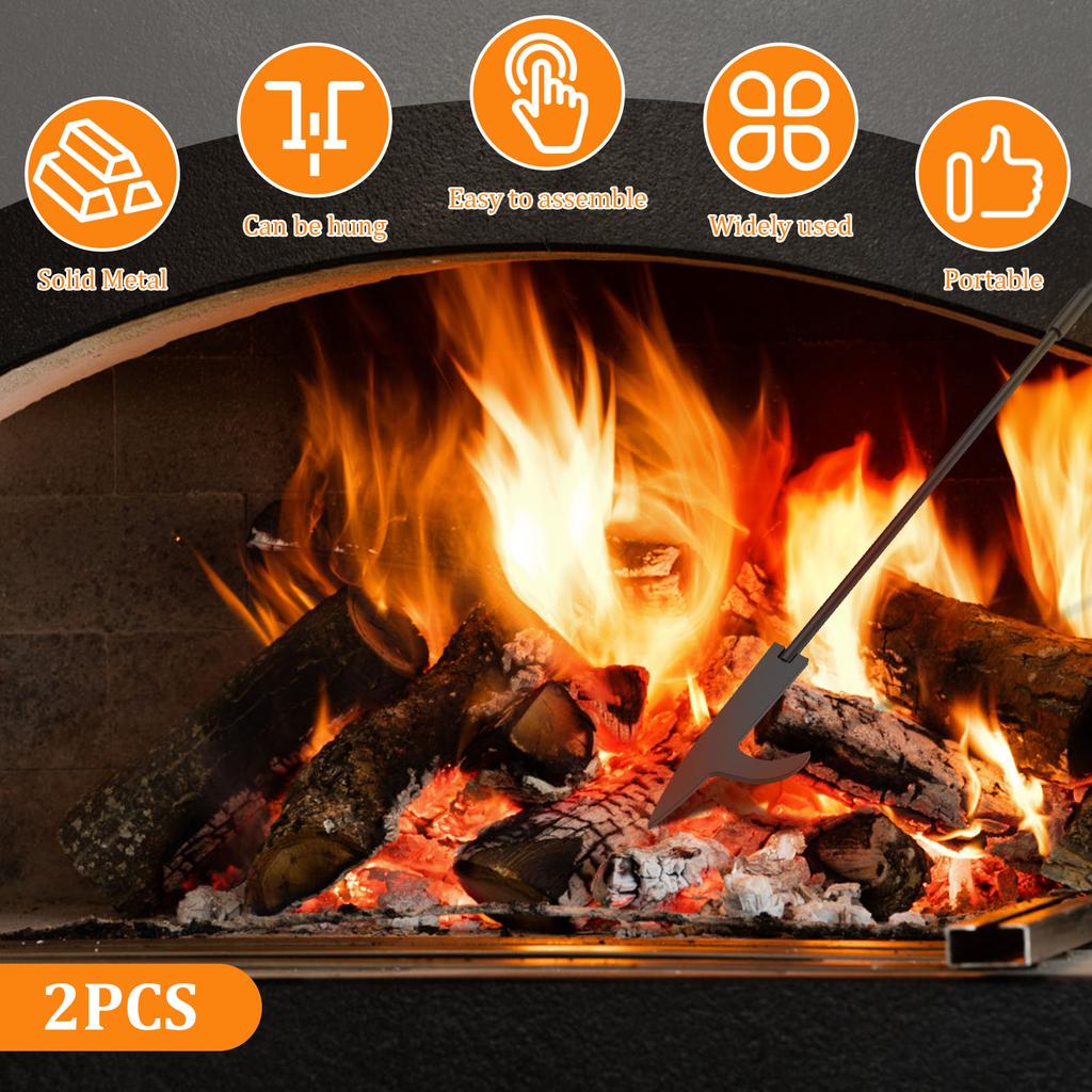 1/2 stuks Vuurpookstok 82cm IJzeren Kampvuurpook met Houten Handvat Verwijderbaar Draagbaar Vuurkorfgereedschap voor Kamperen Open Haard Kachel