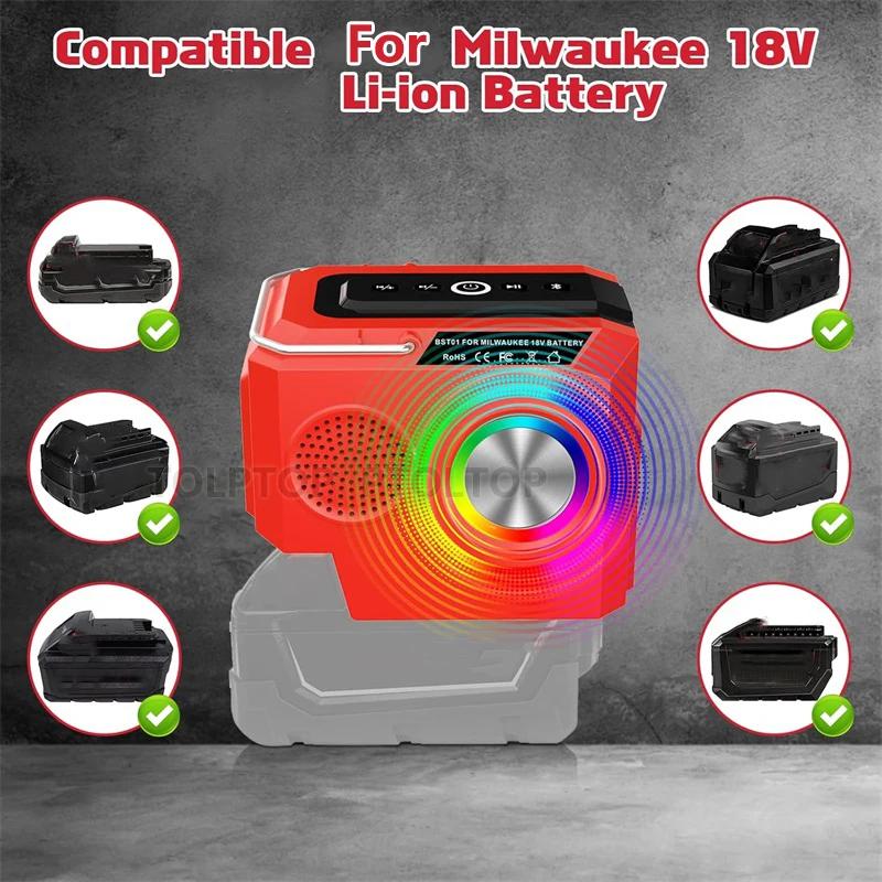 【Fit for Makita /For Milwaukee /For Bosch /For DeWalt】:Plug in your own battery to enjoy the ultimate stereo sound! Low-voltage protection is our first concern. The speaker will automatically shut down if the battery voltage is below 15.5v to prevent any overload damage.
