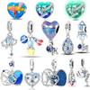 Copper Star Blue Glowing Heart Rocket Astronaut Beads Pendant Charm For Original Bracelet Woman Girl Jewelry