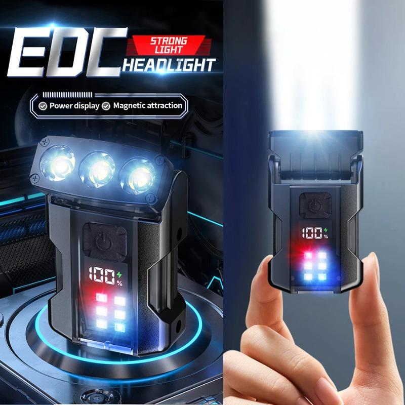 Mini EDC Flashlight Type-C Rechargeable Torch with Magnet Hat Clip 90 ° Adjustable Flash Light Outdoor Emergency Warning Lantern