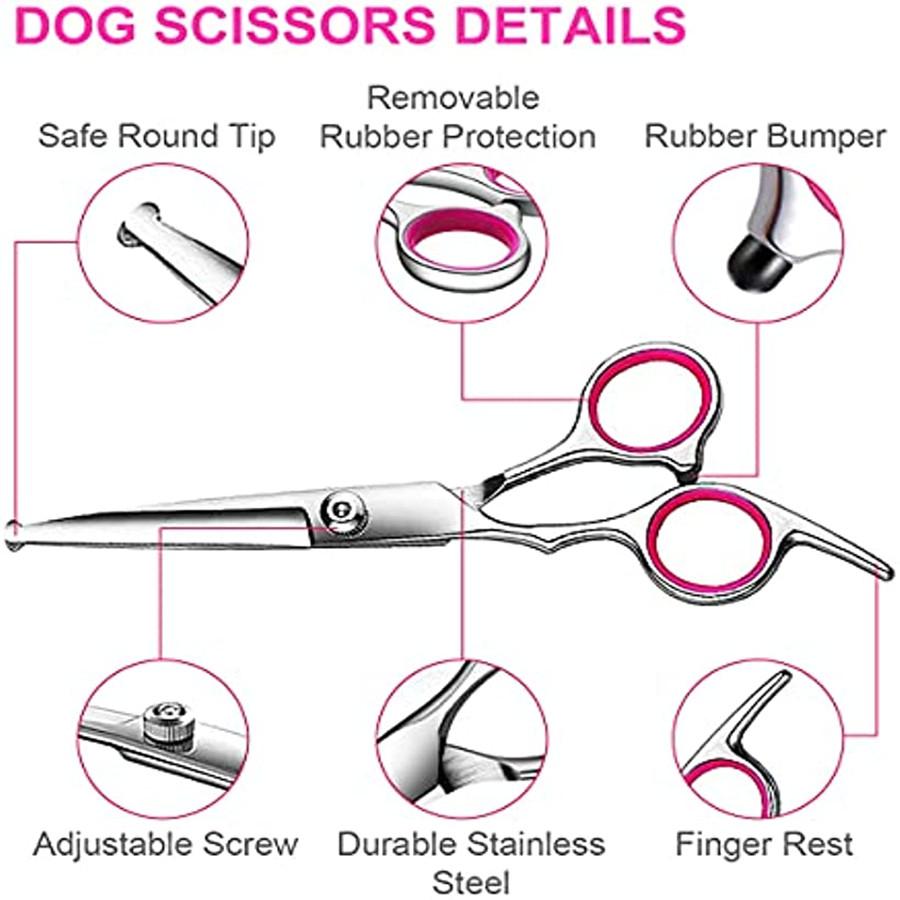 Hondentrimschaarset Veiligheid Ronde Punten Huisdier Hond Kat Trimscharen Set Uitdunnende roestvrijstalen Rechte Gebogen Scharen Kam
