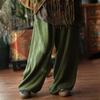 Johnature Women Vintage Winter Warm Straight Pants Elastic Waist Solid Color Pockets Chinese Style Pants