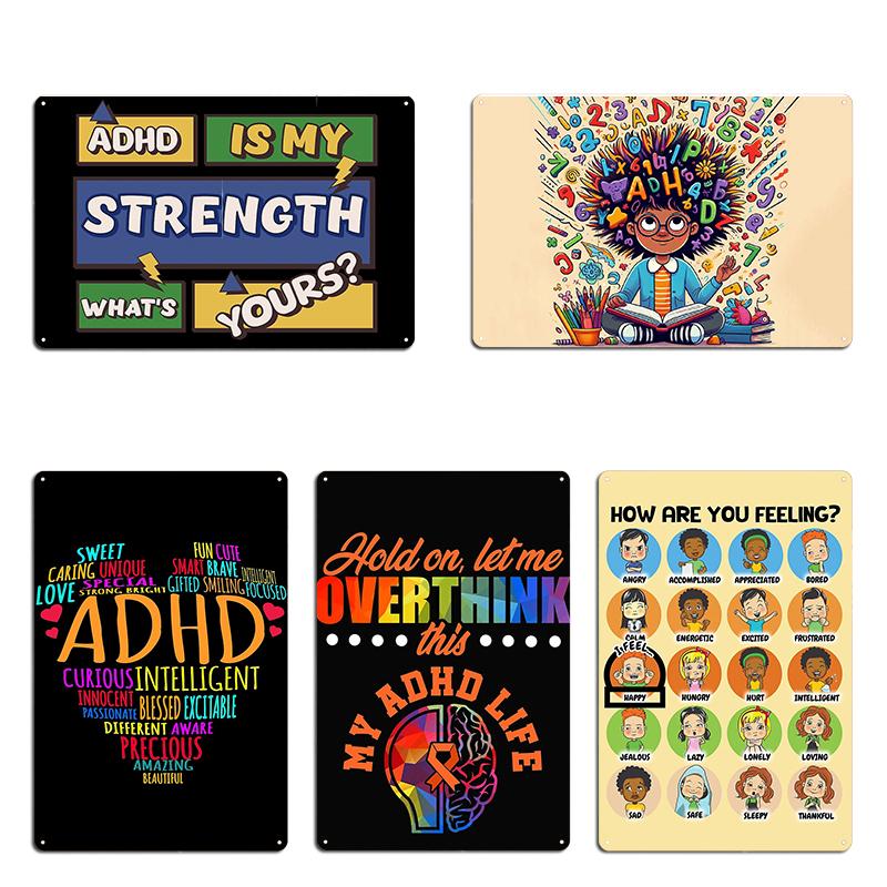 Adhd Strengths Adhd Pride Awareness Qualities Child Metal Plaque Poster Classic printed Bar Tin Sign Poster