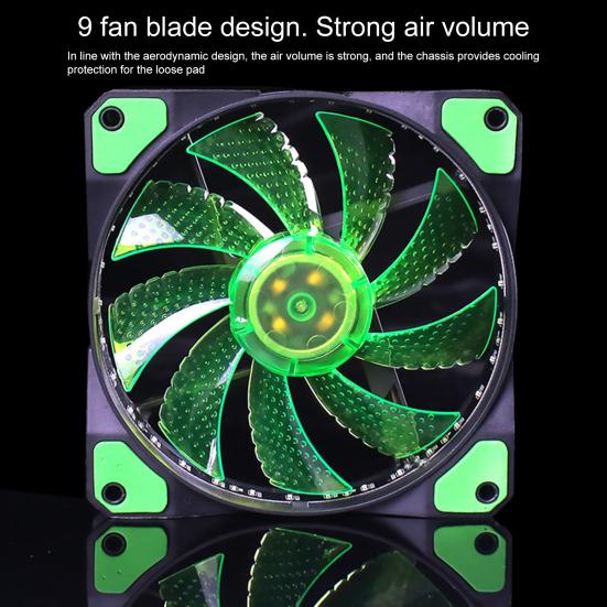 The arc surface of the fan frame is guided, which can produce good airflow and cooling effect, efficient ventilation, and large-capacity heat dissipation. With 15 LED lights, it can meet the individual needs of most players, and you can enjoy a distinctive vision after powering on. 9 Piece blades with a threaded wind groove design improves air circulation, ventilation and heat dissipation around your chassis to cool your vital components.