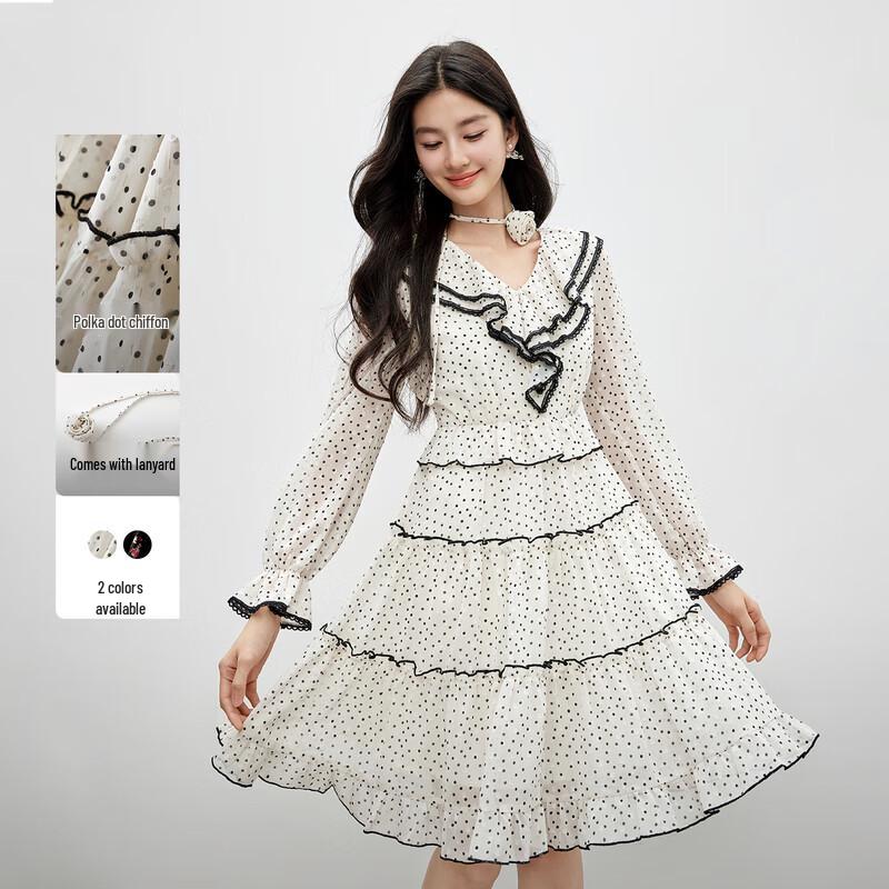 Qiushuiyiren Elegant Contrast Lace A-Line Midi Dress