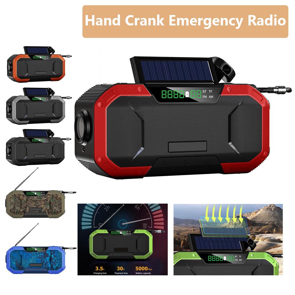 Multi-function FM Radio Outdoor Hand Crank Emergency Radio Waterproof Flashlight Bluetooth-compatible Solar Phone Charger