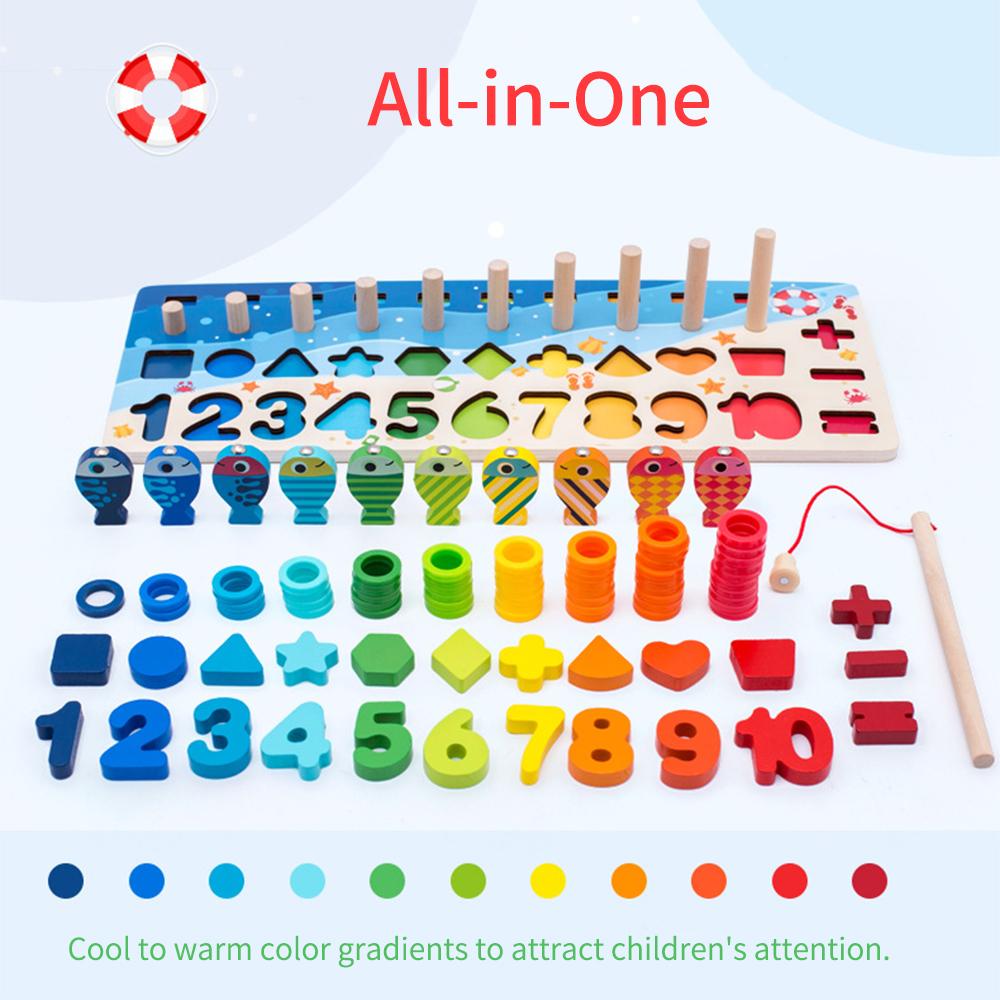 Children s Magnetic Fishing Toy Early Education Logarithmic Board Wooden Number Puzzle Shape Sorting for Kids Toddlers
