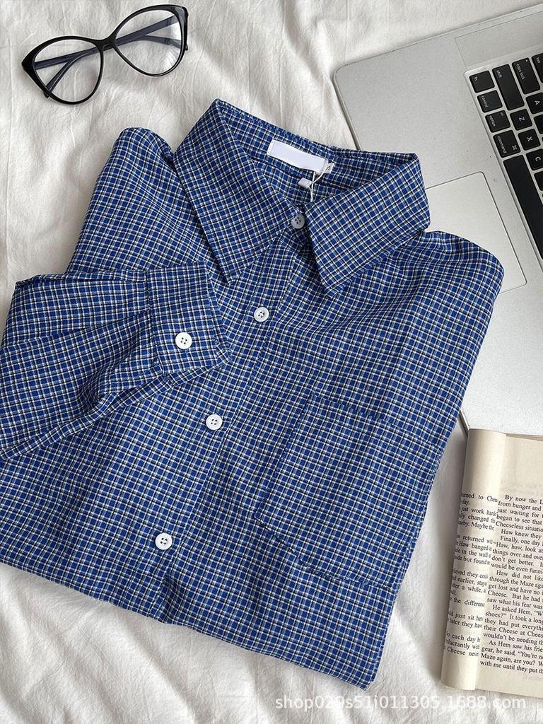 Elevate your wardrobe with this stylish Women's American Retro Blue Plaid Shirt, designed in a Korean style. Perfect for both spring and autumn, this shirt offers a slimming look with its loose fit and long sleeves. Made from high-quality polyester, it provides excellent sun protection. The classic plaid pattern combined with a turn-down collar adds a timeless touch to any ensemble.