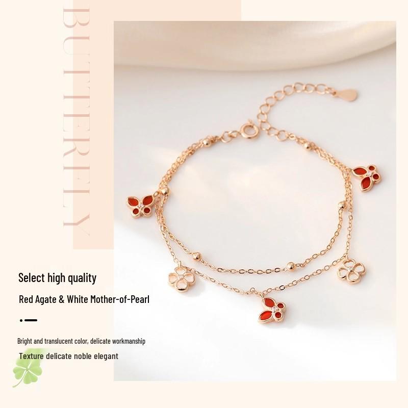 Women's Sterling Silver Clover Bracelet with Agate and Mother-of-Pearl - Elegant Gift for Birthdays or New Year