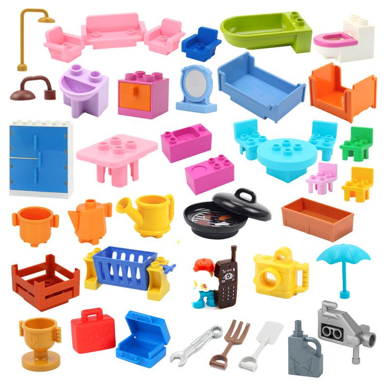 Play House Big Building Blocks Furniture Accessories Utensil Table Chair Compatible Sets Bricks Assemble Toys For Children Gifts