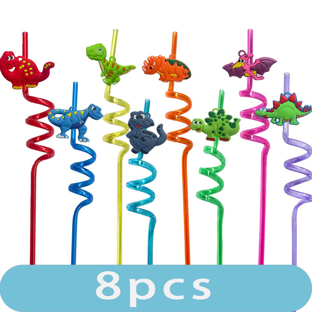 8Pcs Reusable Dinosaur Straws - Safari Jungle Theme Party Decor | Birthday Gift Eco-Friendly Party Supplies Favors