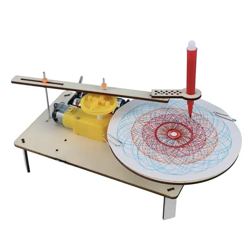 DIY Children's Puzzle Assembly Wooden Electric Plotter Kit Model Automatic Drawing Robot Scientific Physics Experiment Toy