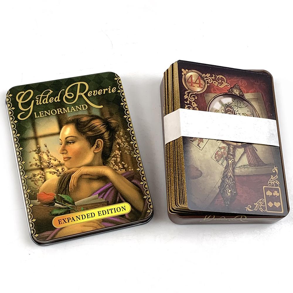 11*8cm Gilded Reverie Lenormand Tarot Deck In A Tin Box Gilded Edge For Prediction Divination Game Cards,Family Gathering Game