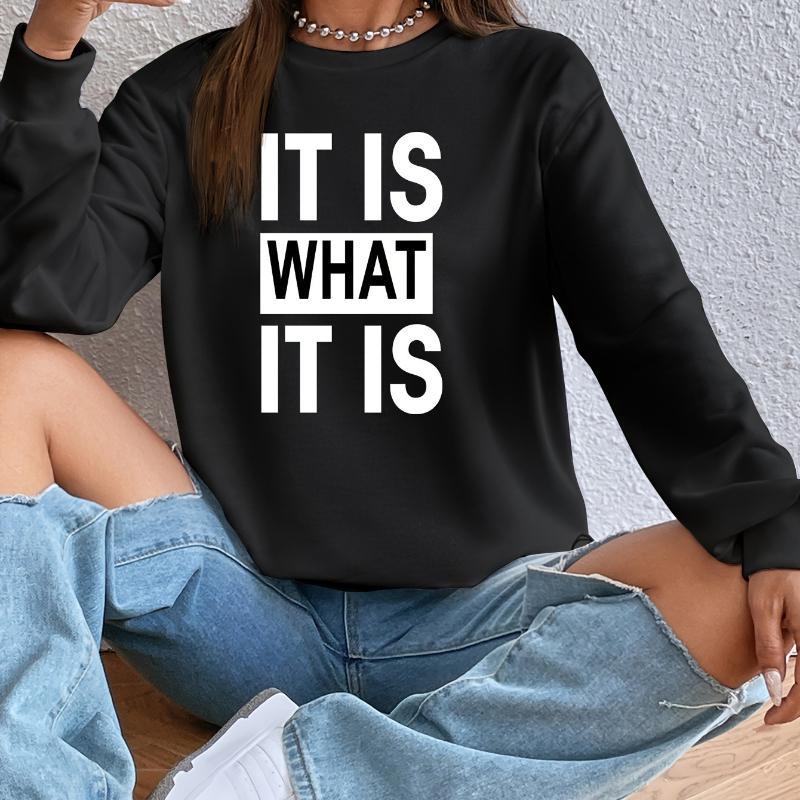 Printed Crew Neck Hoodie, Fleece-Lined Winter Layering