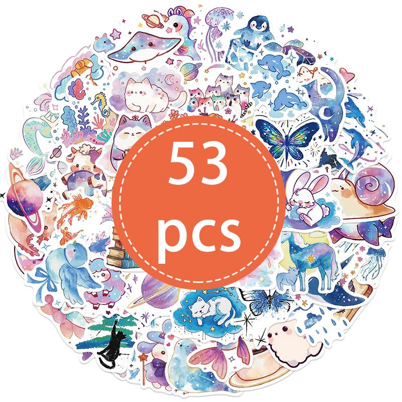 53PCS Watercolor Animal Stickers Cute Cartoon Colorful Animal Stickers Aesthetic Waterproof Vinyl Decals for Water Bottle