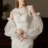 Elegant Yarn Bridal Arm Sleeves Breathable Pleated Lace Arm Covers Thin Lantern shaped Detachable Sleeves Women