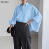 ZANZEA Women Casual Turn Down Collar Loose Long Sleeve Blouse