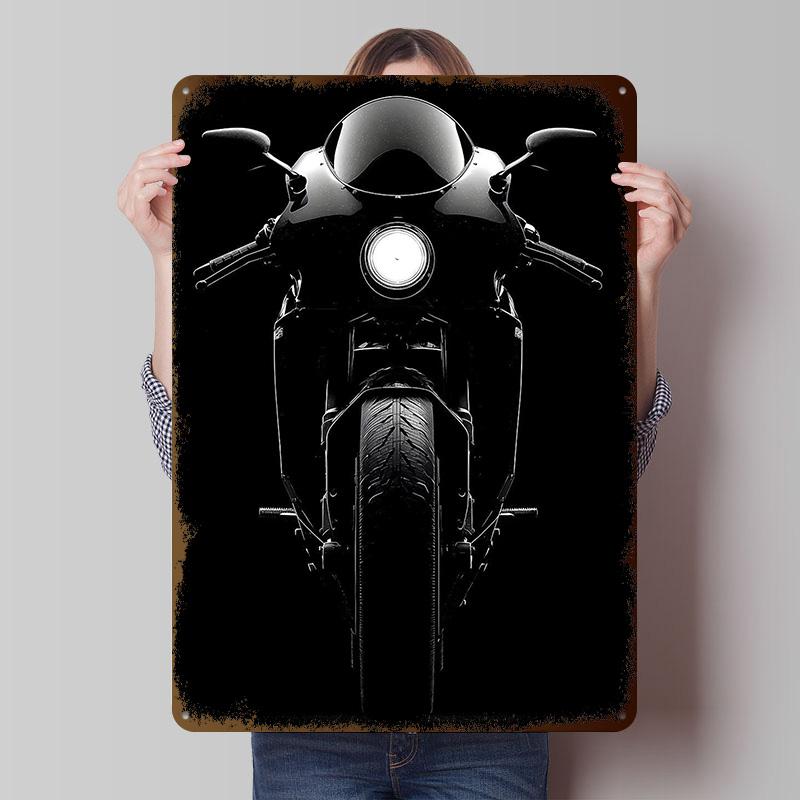 Motorcycle Motorcycle Front View Poster Customized Wall Art Vintage Metal Signs Retro Tin Plaque for Man Cave Mancave Decoration