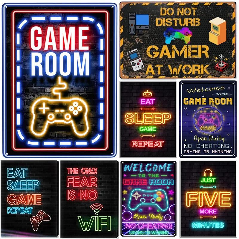 Gaming Room Metal Tin Sign Welcome Game Room Poster Bedroom Decor Iron Plate Youth Dorm Wall Plaque Decoration