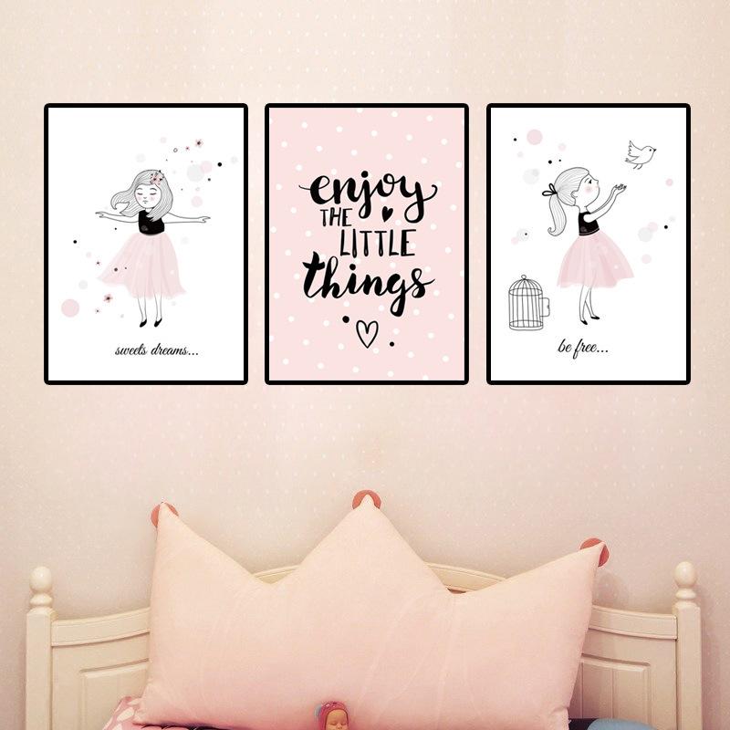 Nordic Cartoon Pink Bird for Girls Kids Canvas Painting Kindergarten Oil Painting Wall Pictures for Living Room Home Decoration