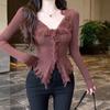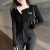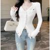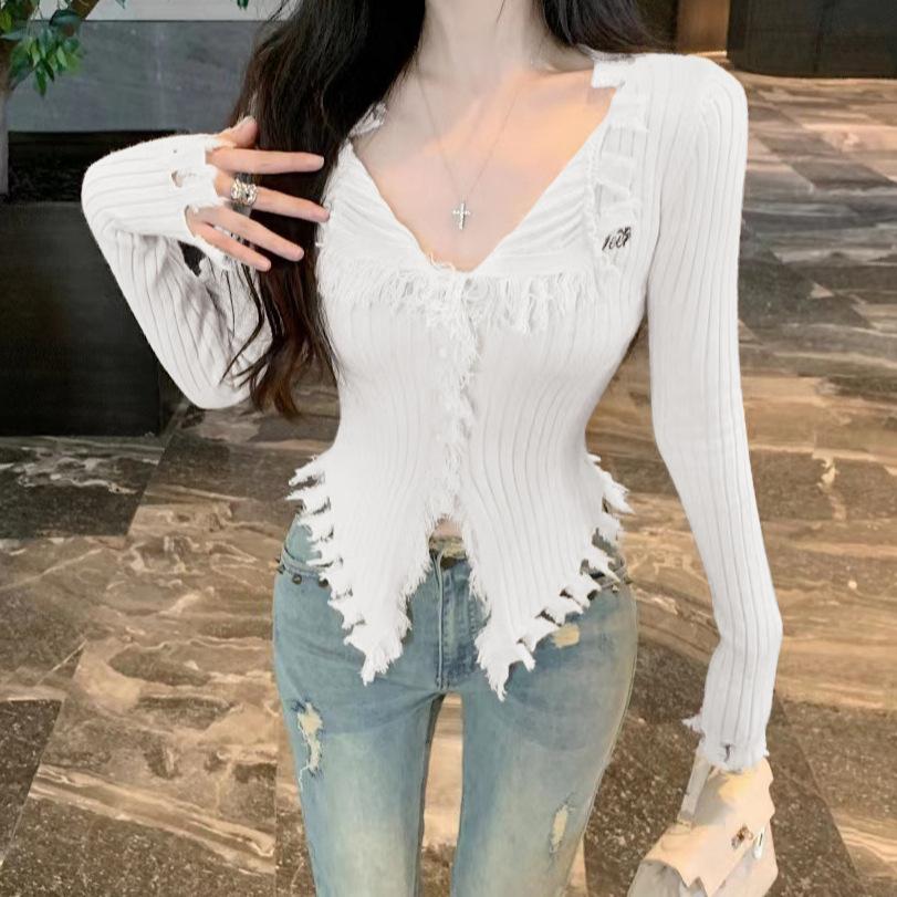 Pure desire style design, rough edge V-neck white sweater, women's autumn and winter new slim and thin niche cardigan top